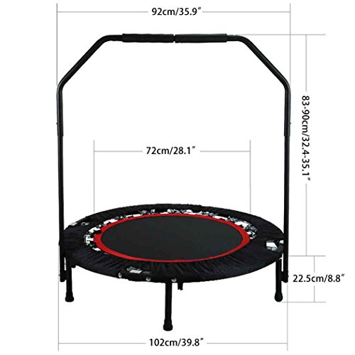 - 40 Inch breiter haltbarer Stahlrahmen. Es ist sehr stark. Sie kann bequem hüpfen; Schaum gepolstert und verstellbarer Handlauf einstellen von 32 "bis 35" für eine zusätzliche Stabilität